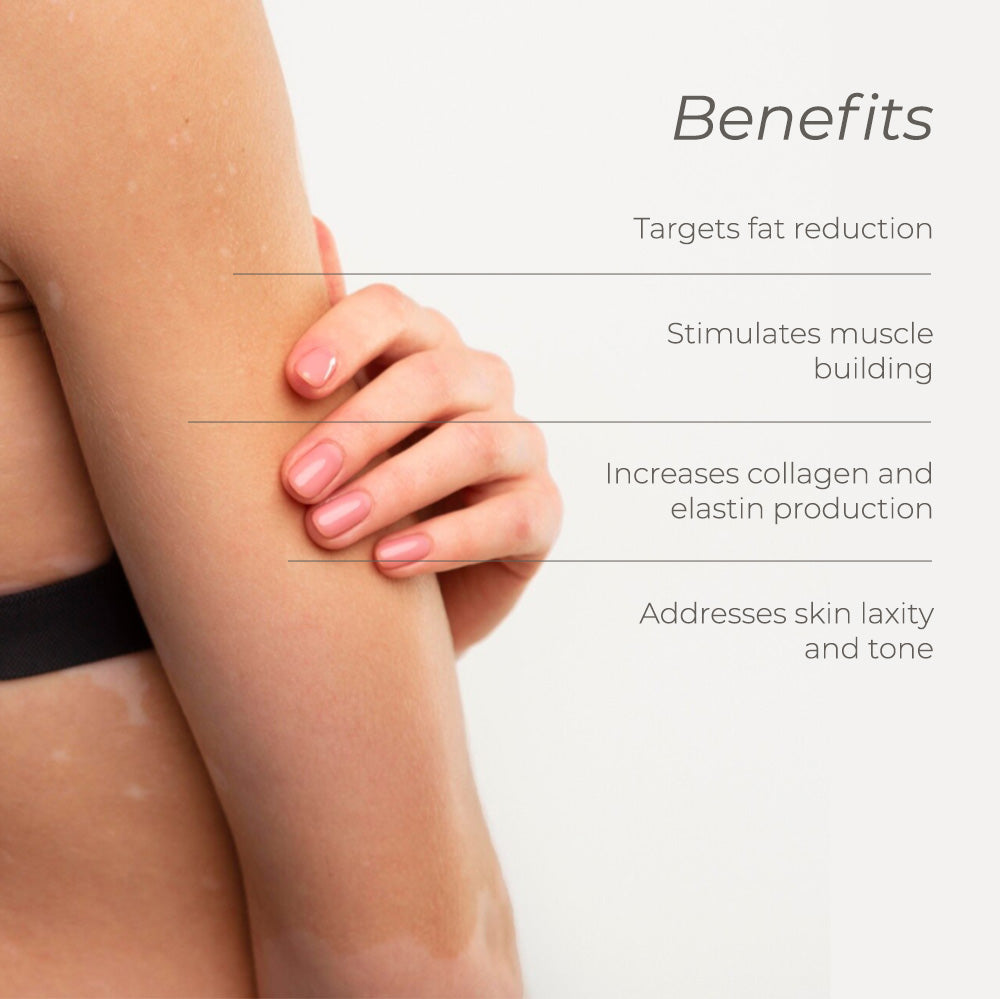 The ultimate lifting and toning treatment for arms, this package combines all three of our modalities; Z Lipo, Emsculpt Neo and Exilis Ultra 360 to target stubborn fat, increase muscle tone and improve skin texture and firmness. Cryolipolysis and radio frequency target fat reduction, while high intensity electromagnetic stimulates muscle building.