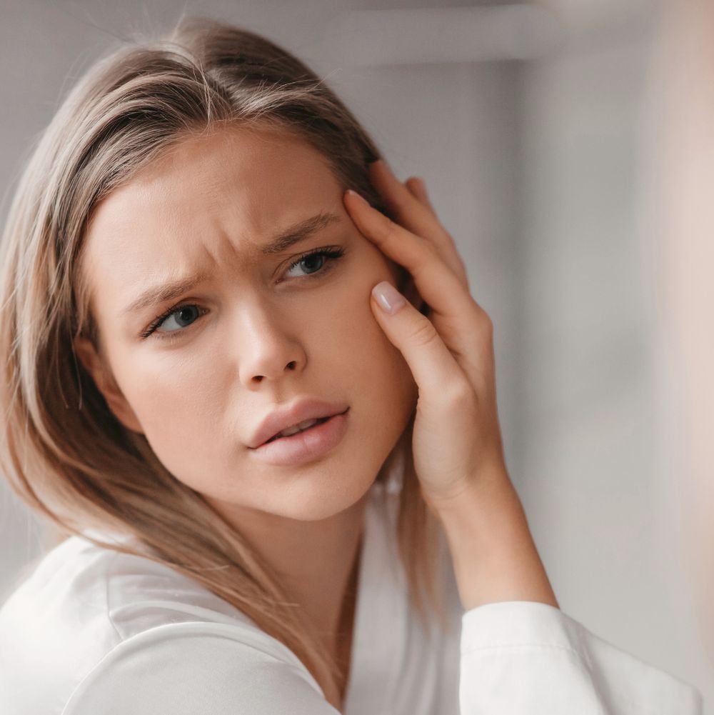 Common signs include tightness, dullness, fine lines that appear more visible, or makeup sitting unevenly. A "crepey" texture or rough patches are also common.