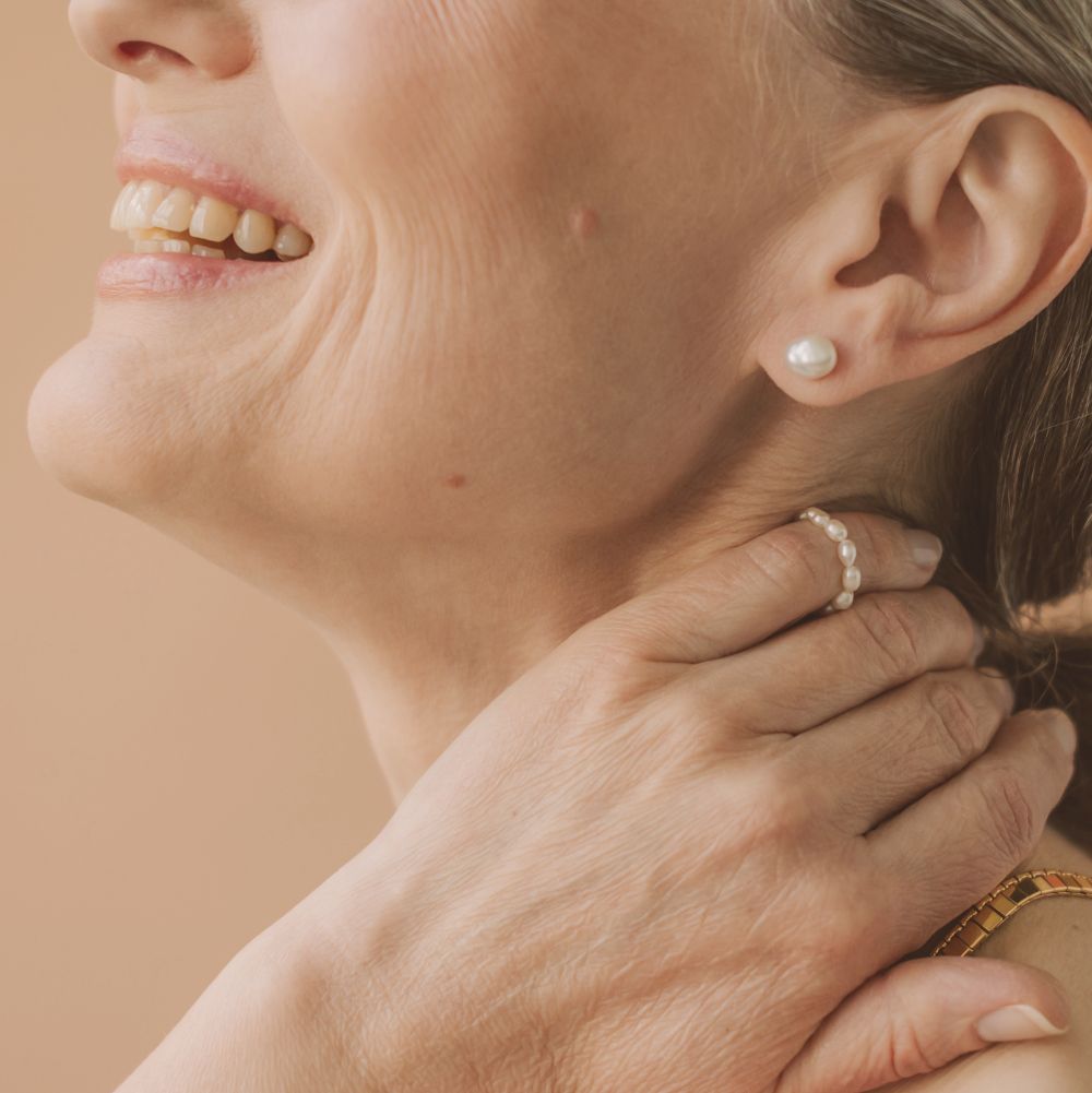 Jowls refer to the loose, sagging skin that develops along the lower part of the cheeks and jawline. They occur as a natural part of the ageing process, when collagen and elastin, the proteins responsible for keeping our skin firm and elastic, begin to break down. With the onset of menopause, there is a rapid decline in collagen production, with a 30% reduction in the collagen content of skin during the first five years of menopause. After this, the decline is more gradual, with approximately 2% loss of skin collagen every year for the next 20 years. This reduction in collagen and the structural components of the dermis leads to skin laxity and wrinkles which can be very prominent around the jawline, jowls and neck. This is compounded by loss of bone density in the cheek bones, jaw and temples, loss of subcutaneous fat and other soft tissues with a resultant loss of facial volume and shifting of the fat pads beneath the surface of the skin with hollowing of the cheeks and temples, and descent of the face. Over time, gravity, sun exposure, and the gradual weakening of facial muscles also contribute to the descent of tissue in this area, resulting in a less defined jawline. Genetics, lifestyle habits, and weight fluctuations can further influence how and when jowls appear.